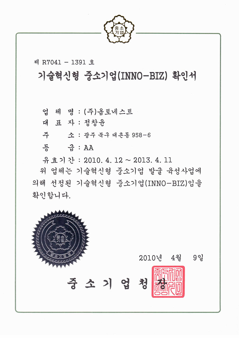 인증 | 기술혁신형 중소기업 확인서 페이지 정보 작성자 관리자 작성일10-10-15 09:18 조회18,759회 댓글0건 관련링크 이전글 다음글 목록 본문 기술혁신형 중소기업 확인서 댓글목록 등록된 댓글이 없습니다. 이전글 다음글 목록