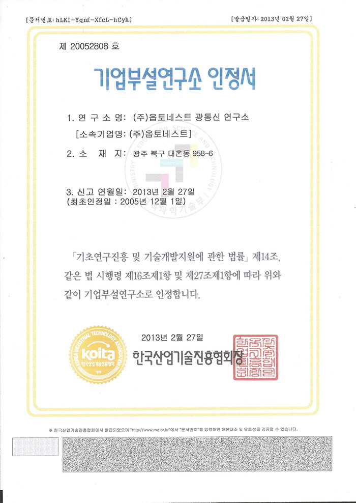 인증 | 기업부설연구소 인정서 페이지 정보 작성자 관리자 작성일13-05-23 09:28 조회18,069회 댓글0건 관련링크 이전글 다음글 목록 본문 기업부설연구소 인정서 댓글목록 등록된 댓글이 없습니다. 이전글 다음글 목록