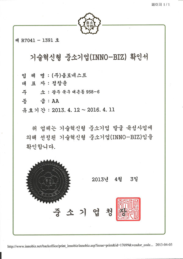 인증 | 기술혁신형 중소기업(INNO-Biz)확인서 페이지 정보 작성자 관리자 작성일13-05-23 09:29 조회17,896회 댓글0건 관련링크 이전글 다음글 목록 본문 기술혁신형 중소기업(INNO-Biz)확인서 댓글목록 등록된 댓글이 없습니다. 이전글 다음글 목록