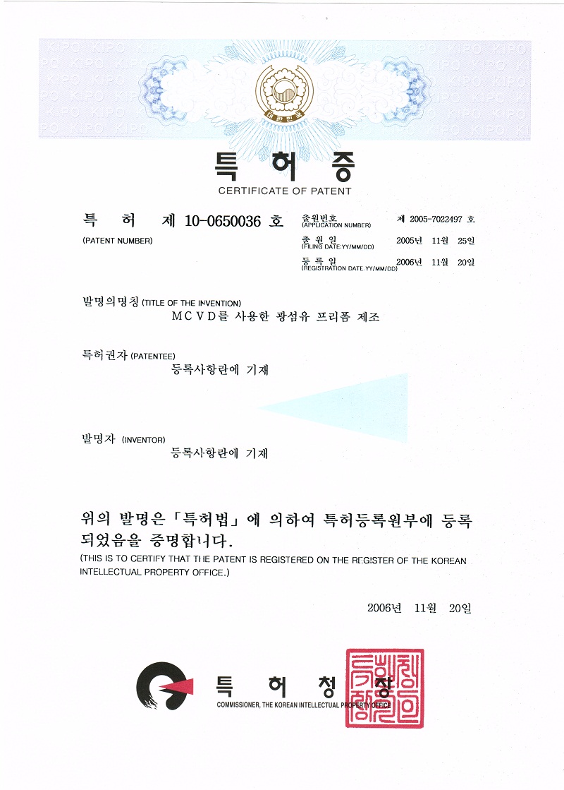 특허 | (대한민국) MCVD를 사용한 광섬유 프리폼 제조 페이지 정보 작성자 관리자 작성일11-08-05 21:18 조회17,204회 댓글0건 관련링크 이전글 다음글 목록 본문 (대한민국) MCVD를 사용한 광섬유 프리폼 제조 댓글목록 등록된 댓글이 없습니다. 이전글 다음글 목록